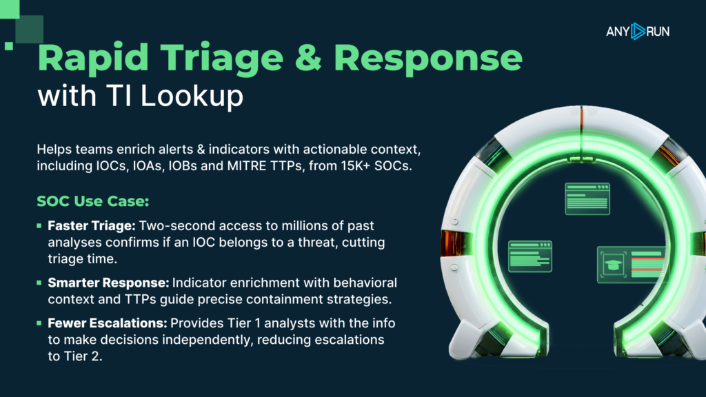 ANY.RUN’s Threat Intelligence supports this across three core SOC processes.