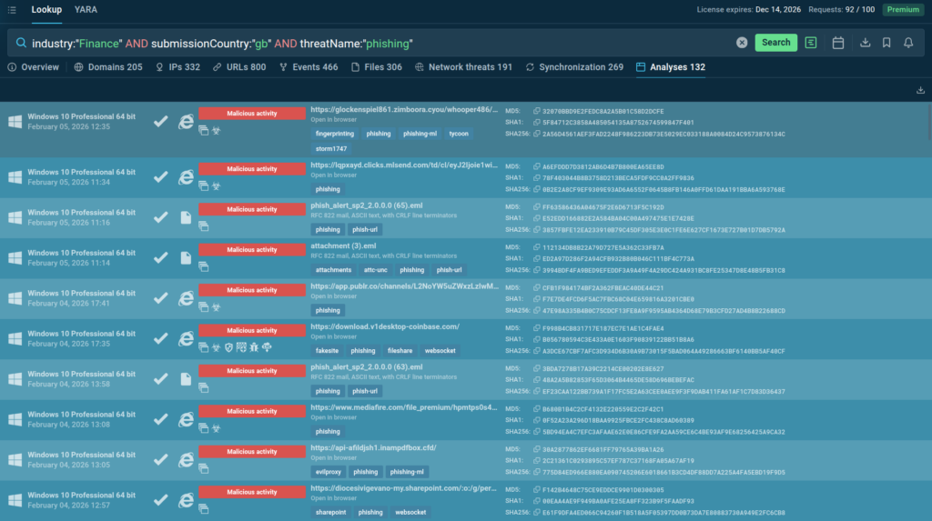 industry:”Finance” AND submissionCountry:”gb” and threatName:”phishing”