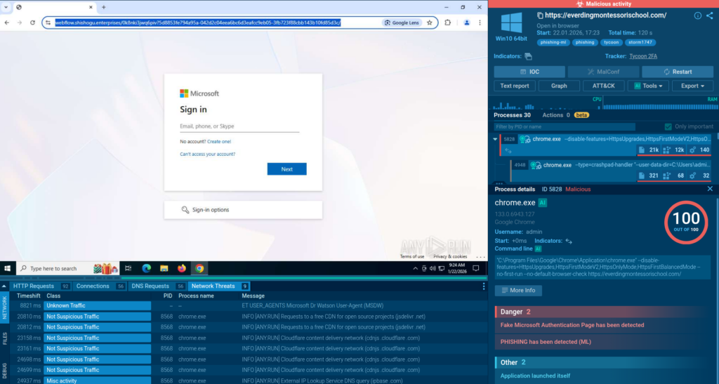ANY.RUN observes a growing trend of phishing kit infrastructure being hosted on legitimate cloud and CDN platforms, rather than on newly registered domains. These campaigns often target enterprise users specifically, creating a global threat to businesses. The shift creates serious visibility challenges for security teams, as trusted platforms and valid indicators shield malicious activity from detection.