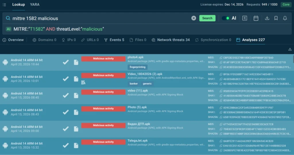The biggest change is expanded access to Threat Intelligence: Free plan users now get 20 premium requests in TI Lookup and YARA Search. This gives security teams a practical way to check suspicious indicators, explore related sandbox sessions, and validate malware or phishing activity using real attack data.
