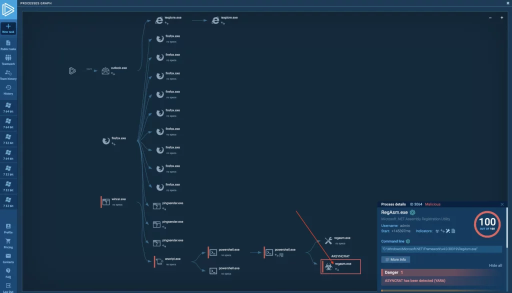 Our Malware Trends Tracker gives you details on recent samples, their popularity, and associated IOCs from public tasks that detected the threat. It also outlines the threat’s general behavior and execution patterns.