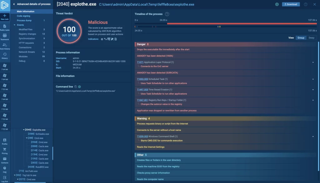 ANY.RUN is a cloud malware sandbox that handles the heavy lifting of malware analysis for SOC and DFIR teams. Every day, 300,000 professionals use our platform to investigate incidents and streamline threat analysis.