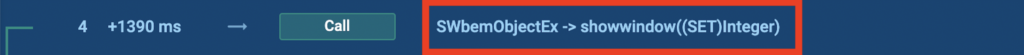Then there’s the “ShowWindow” call, likely used to manipulate the visibility of a window, which is probably why we didn’t see the dialogue box of the macro when we opened the document.