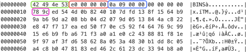 - magic bytes: always contains the value “BINS” for all subsequent communications.