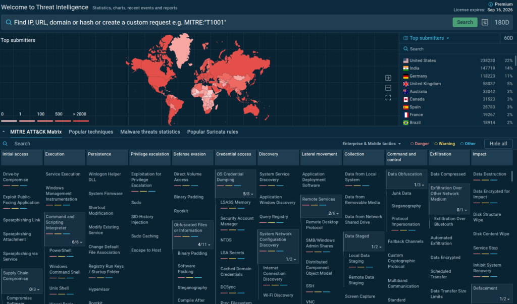 The source of indicators is unique: all data comes from millions of malware analysis sessions done in ANY.RUN’s Interactive Sandbox. TI Lookup allows you to tap into it to gain invaluable insights into real threats targeting 15,000 companies in finance, manufacturing, transportation, government, and other industries right now.