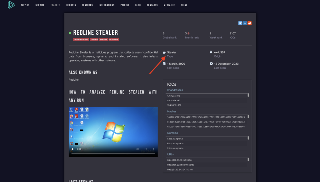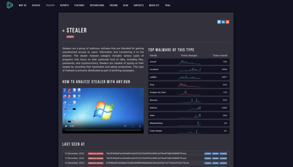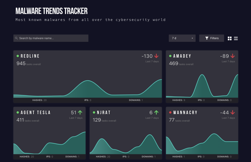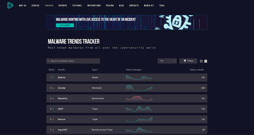 In Trends tracker, you can also find information about different types of malware, (stealers, ransomware, trojans and so on).