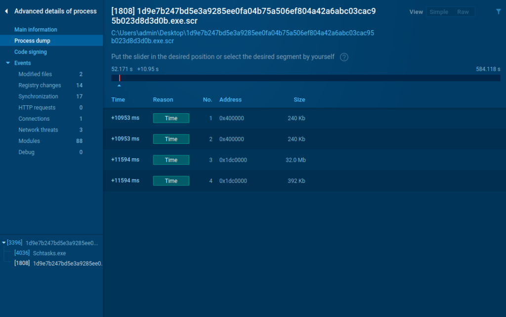 - Downloadable memory dumps. You can now download memory dumps and analyze them locally. This option is available under the “Advanced details” section of the process window.