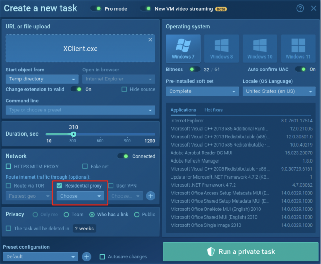 - Residential Proxy You can now assign a home user’s IP to virtual machines and change the location, making it easier to work with geo-targeted samples and evade detection.