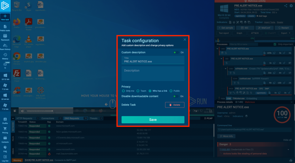 Our Enterprise plan is designed for teams working together on malware analysis. But the larger the team, the higher the chances of someone making a mistake — like accidentally making a task public, visible to the whole ANY.RUN community, when they meant for it to be private.