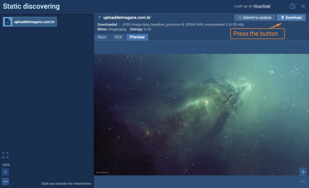 1. While still in ANY.RUN, download the image by clicking on the Download button.