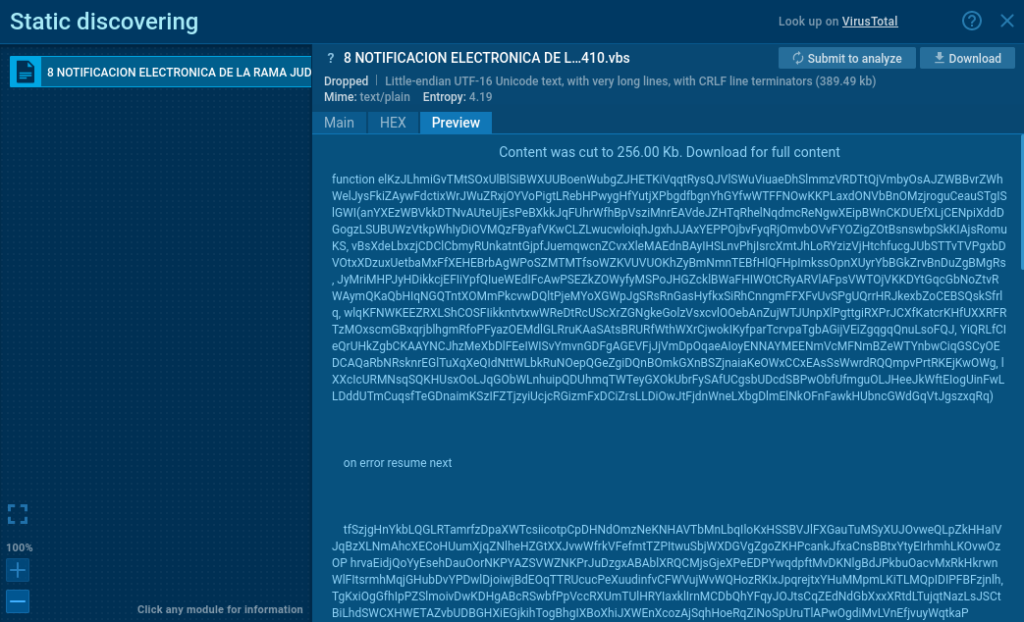 In addition, the VBS script is heavily obfuscated — and it is bloated to around 350-400 KB with junk data to make analysis challenging.